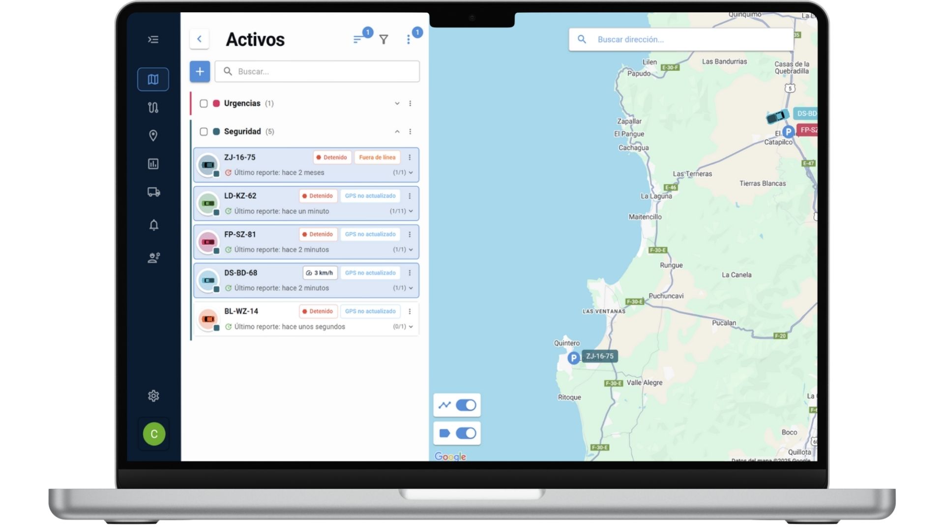 Rastreo GPS en tiempo real de vehiculos, maquinaria y activos con geocercas y alertas automaticas.